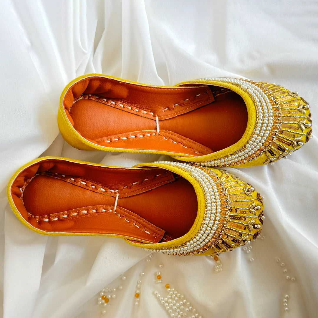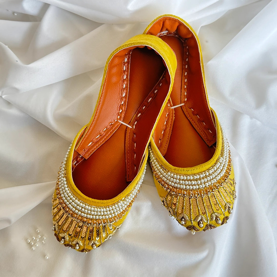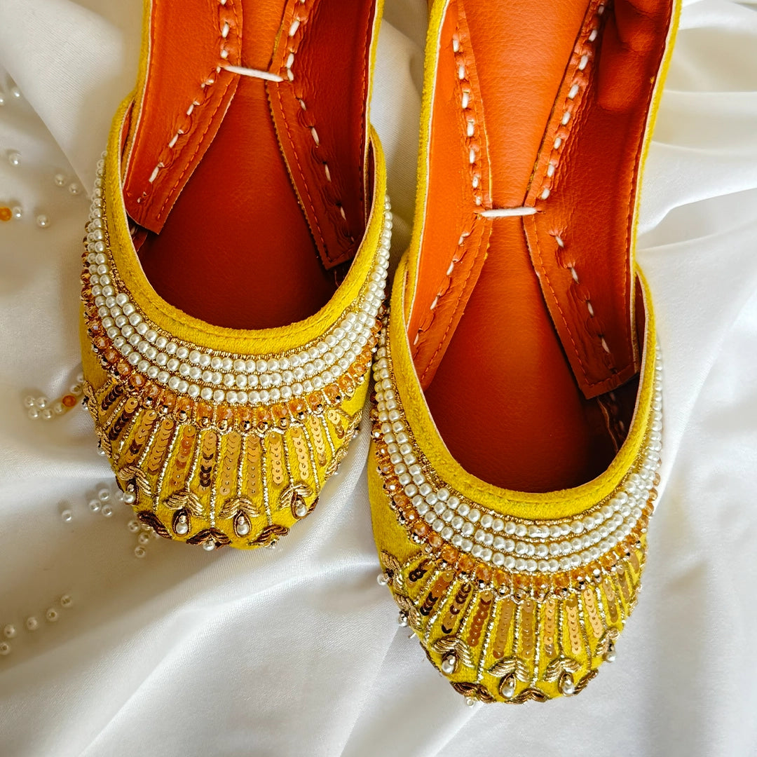 Introducing Arzoo ,embodying the essence of desi elegance. These vibrant green khussas feature intricate hand-embroidered work adorned with shimmering kora, delicate mooti, and radiant sitara. Perfect for festive occasions or elevating your everyday style, each pair is a celebration of tradition and craftsmanship. Step into a world of color and artistry with these stunning pieces!